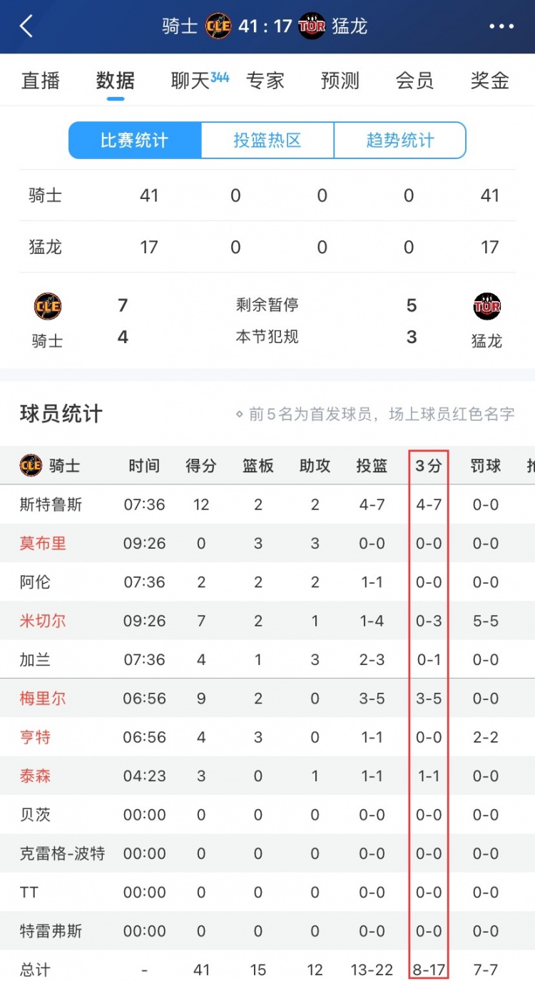 一節(jié)花!騎士首節(jié)扔進(jìn)8記三分&轟下41分 直接領(lǐng)先猛龍24分!