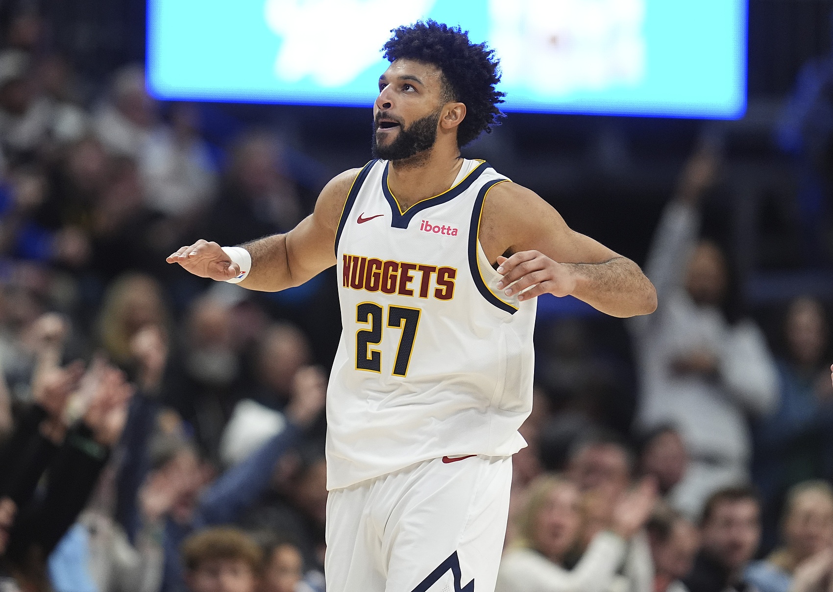 本場比賽,賈馬爾-穆雷進(jìn)出戰(zhàn)42分鐘,36中20,三分15中7,罰球9中8爆砍55分(生涯新高)4籃板5助攻2搶斷,正負(fù)值+26全場最高!