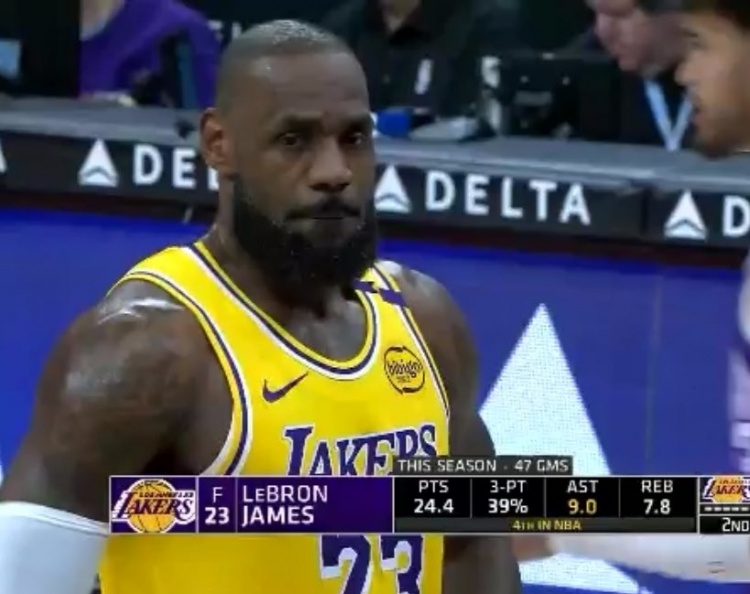 老頂中鋒!詹姆斯上半場8中4得到12分4板3助1斷 三分4中3