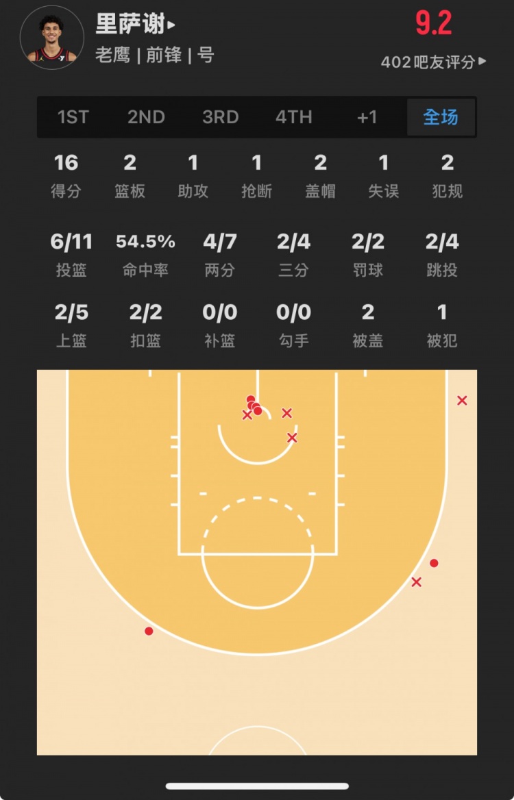 老鷹狀元秀 扎卡里-里薩謝 登場30.1分鐘