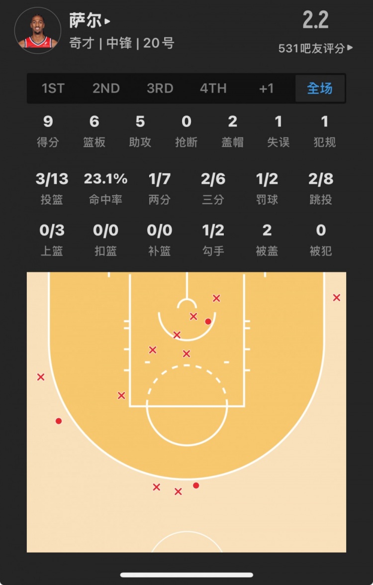 奇才榜眼秀 亞歷克斯-薩爾 登場31.7分鐘
