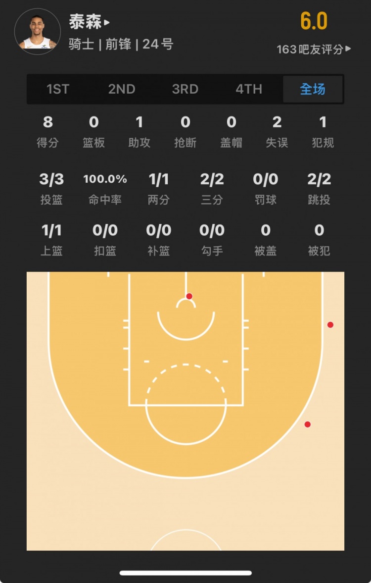 騎士20號秀 杰倫-泰森 登場17.1分鐘