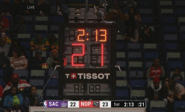 怎么還沒修好...鵜鶘主場計(jì)時器壞了&工作人員甚至搬了新的出來!