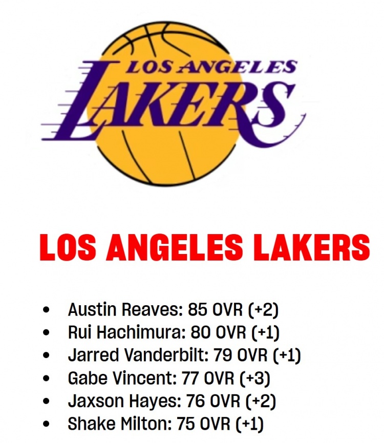 2K能力值變化之湖人:里夫斯+2到85 海斯+2至76 文森特+3到77