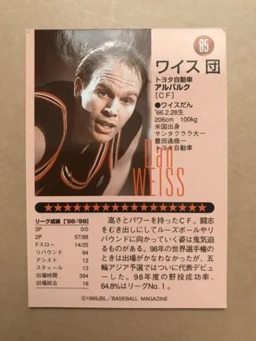 1999年,福岡舉辦的亞洲杯男子籃球預選賽中,日本隊加入了一名名叫“ワイス 団(英文名Daniel A Weiss)”的中鋒球員。這也是日本歷史上第一次啟用“歸化球員”。