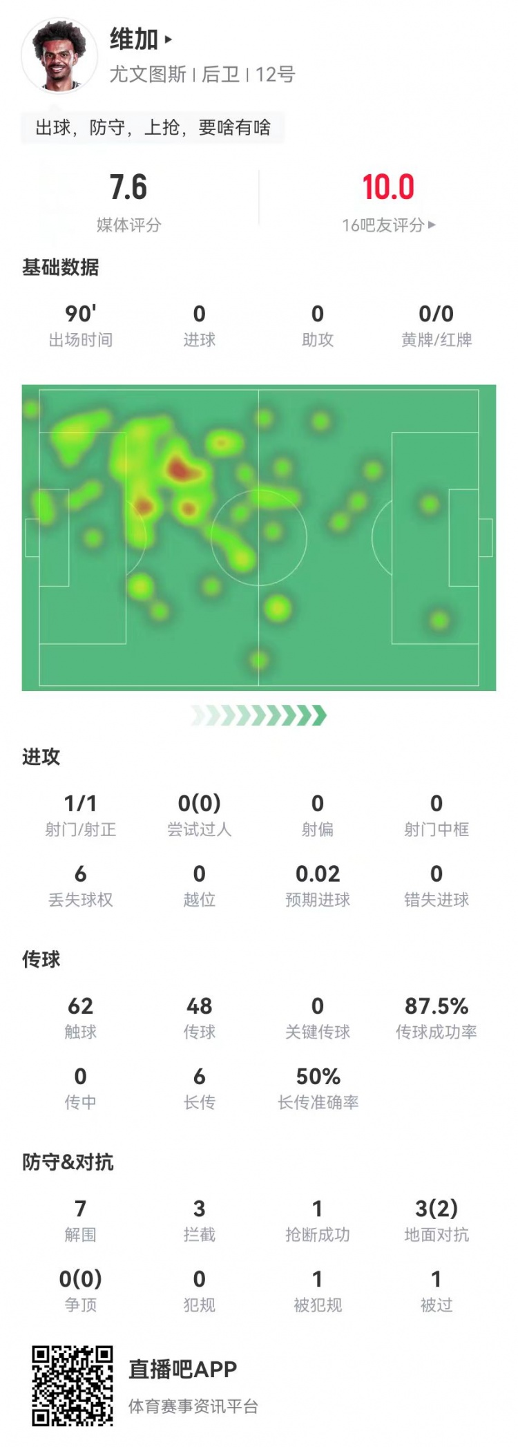 2月17日訊 尤文在本輪意甲1-0擊敗國米,維加本場(chǎng)數(shù)據(jù)如下: