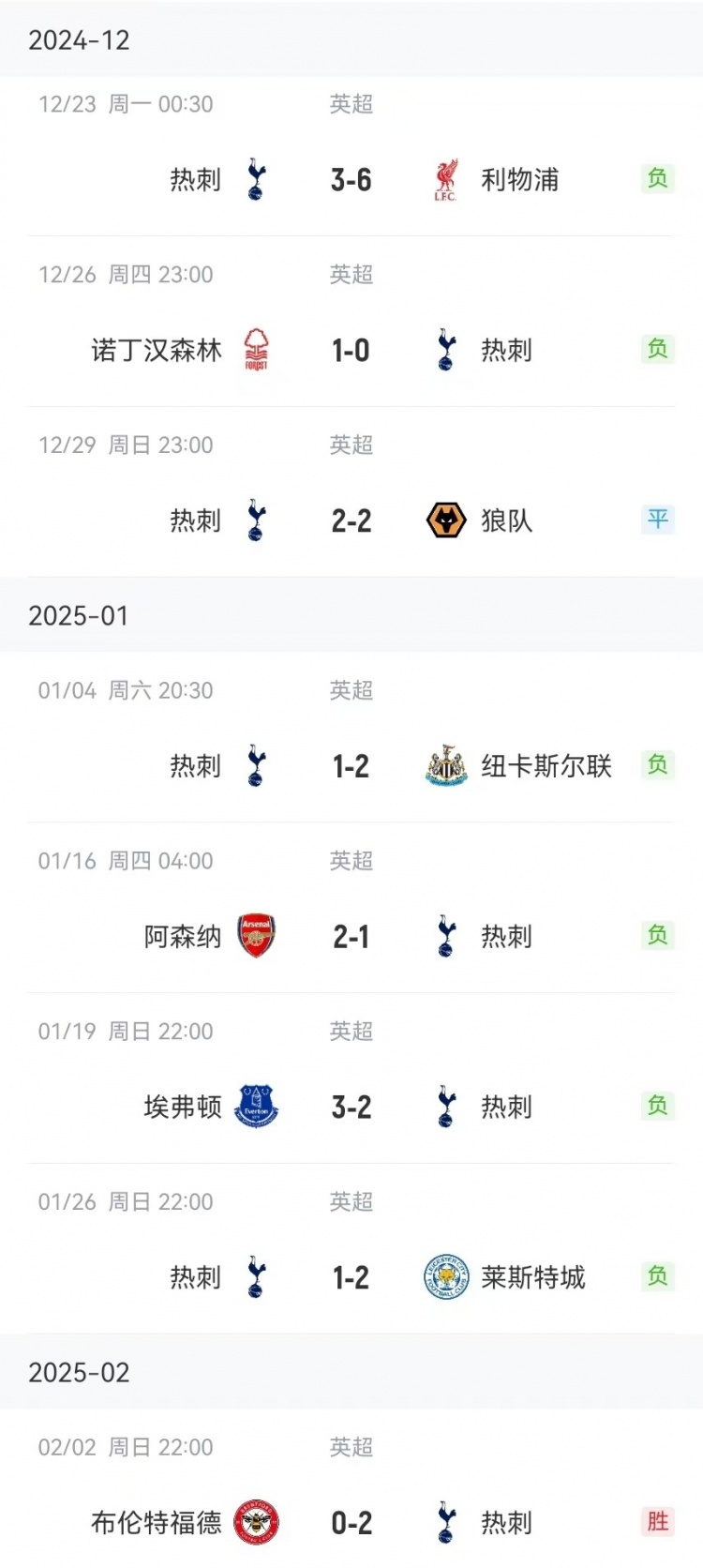 2月3日訊 熱刺在本輪英超2-0布倫特福德,結(jié)束了一波7輪不勝。數(shù)據(jù)統(tǒng)計顯示,熱刺上次在英超贏球還是12月中旬5-0副班長南安普頓,自那之后他們遭遇1平6負。 標簽: 足球 英超 熱刺 布倫特福德