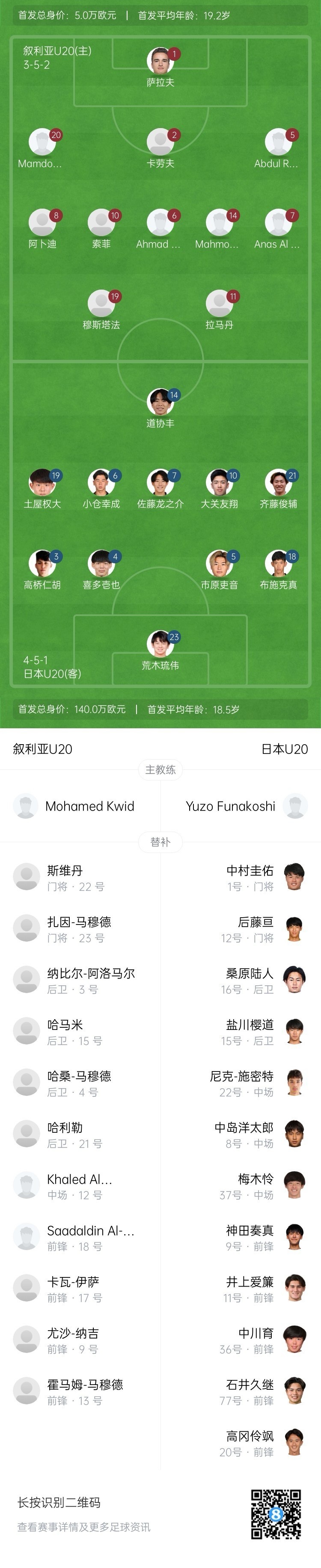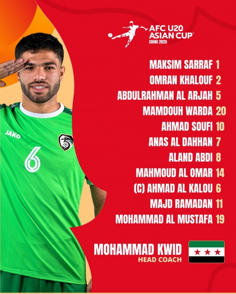 敘利亞U20本場首發(fā)如下: