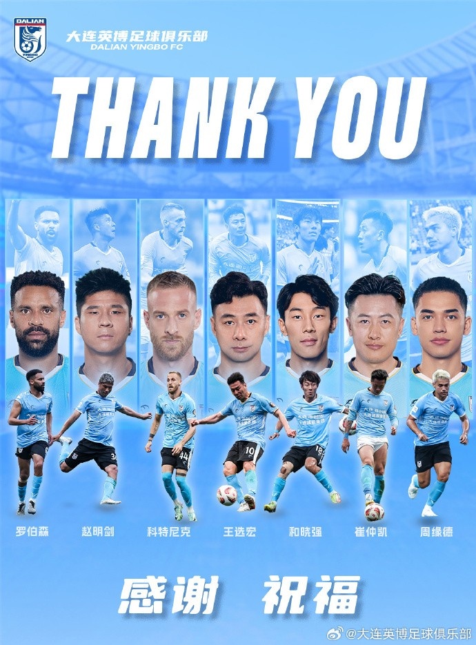 大連英博足球俱樂部衷心感謝所有球員的辛勤付出和不懈努力!祝愿大家未來一切順利!