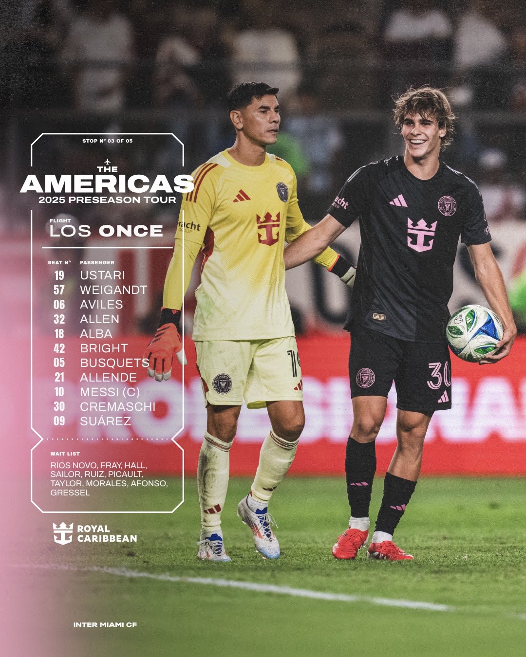 邁阿密國際首發(fā):19-烏斯塔里、57-韋甘特、6-阿維萊斯、32-阿倫、18-阿爾巴、42-布萊特、5-布斯克茨、21-阿連德、10-梅西、30-克雷馬斯基、9-蘇亞雷斯