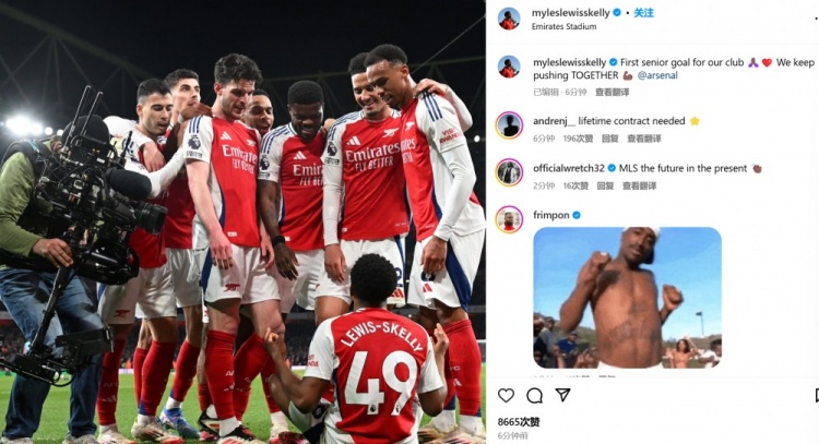 他也在賽后通過(guò)社媒曬出自己被隊(duì)友圍在一起的慶祝照,并配文:“為我們俱樂(lè)部打進(jìn)的一線(xiàn)隊(duì)首球??????????我們繼續(xù)一起努力@阿森納俱樂(lè)部”。