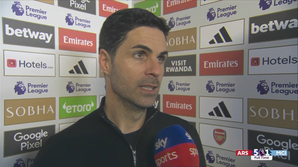 02月03日訊 英超焦點(diǎn)戰(zhàn),阿森納5-1血洗曼城。賽后阿森納主帥阿爾特塔接受了BBC和天空體育的采訪,談?wù)摿吮緢霰荣惖囊恍┰掝}。