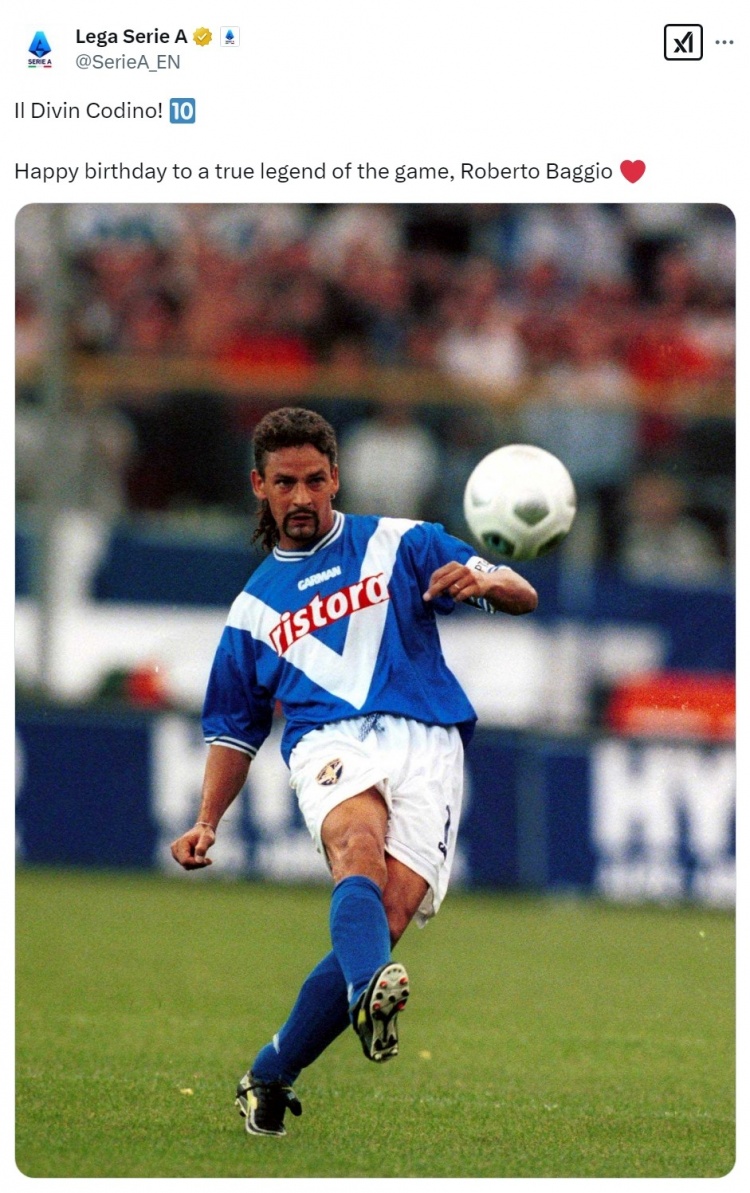 意甲官方社媒祝巴喬58歲生日快樂:真正的足壇傳奇!