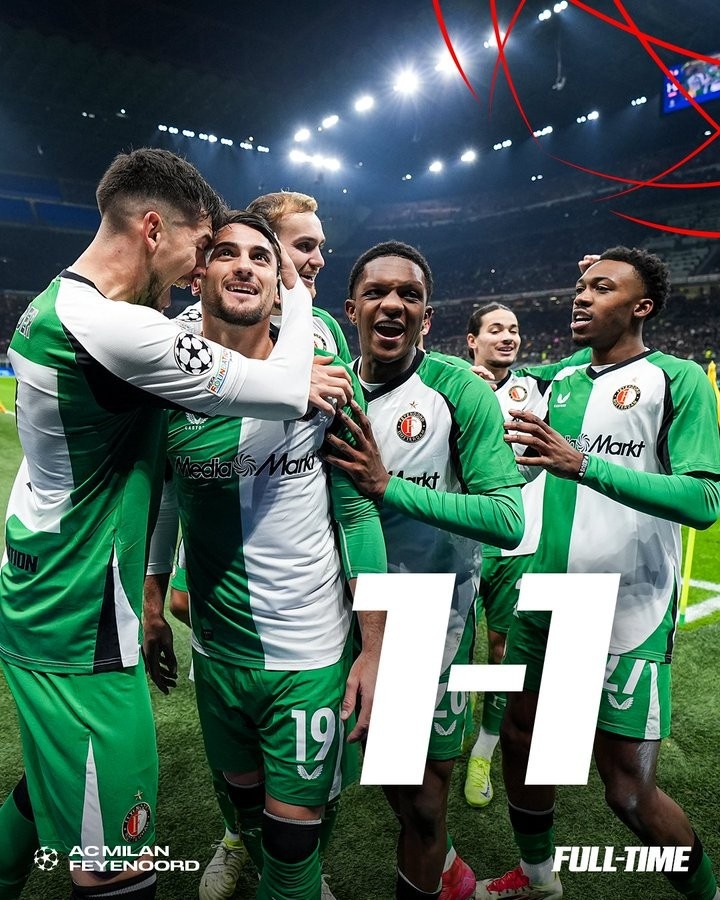 2月19日訊 費耶諾德在本輪歐冠客場1-1逼平米蘭,總比分2-1晉級歐冠十六強戰(zhàn)。