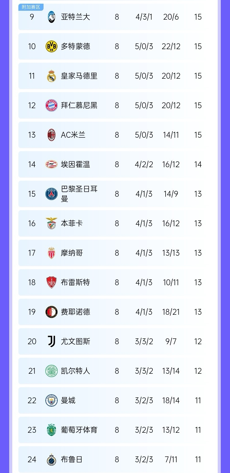 亞特蘭大本賽季歐冠聯(lián)賽階段4勝3平僅1負(fù),他們2-3輸給過(guò)皇馬。雖然沒能直接晉級(jí),但是“真藍(lán)黑”排名附加區(qū)第1,對(duì)陣附加區(qū)倒數(shù)第1的布魯日,按理說(shuō)應(yīng)該沒有問(wèn)題。但是歐冠版“黑八奇跡”上演,亞特蘭大遭雙殺出局。