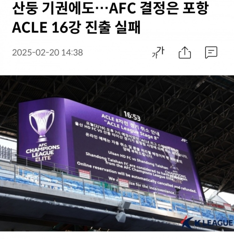 2月20日訊 據(jù)韓國媒體韓聯(lián)社報道,韓國足球職業(yè)聯(lián)盟表示,盡管已經(jīng)就浦項制鐵能否晉級亞冠精英聯(lián)賽16強的問題與亞足聯(lián)進行了討論,但只得到了“只能按照規(guī)定進行”的答復。