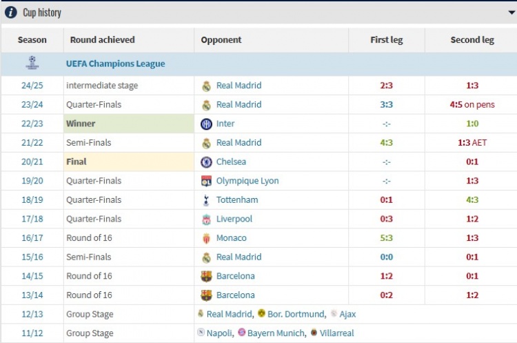 根據(jù)德轉(zhuǎn)統(tǒng)計(jì),自1992年歐冠改制后,曼城參加了14次歐冠,本賽季是時(shí)隔11個(gè)賽季之后再度無緣晉級16強(qiáng)。