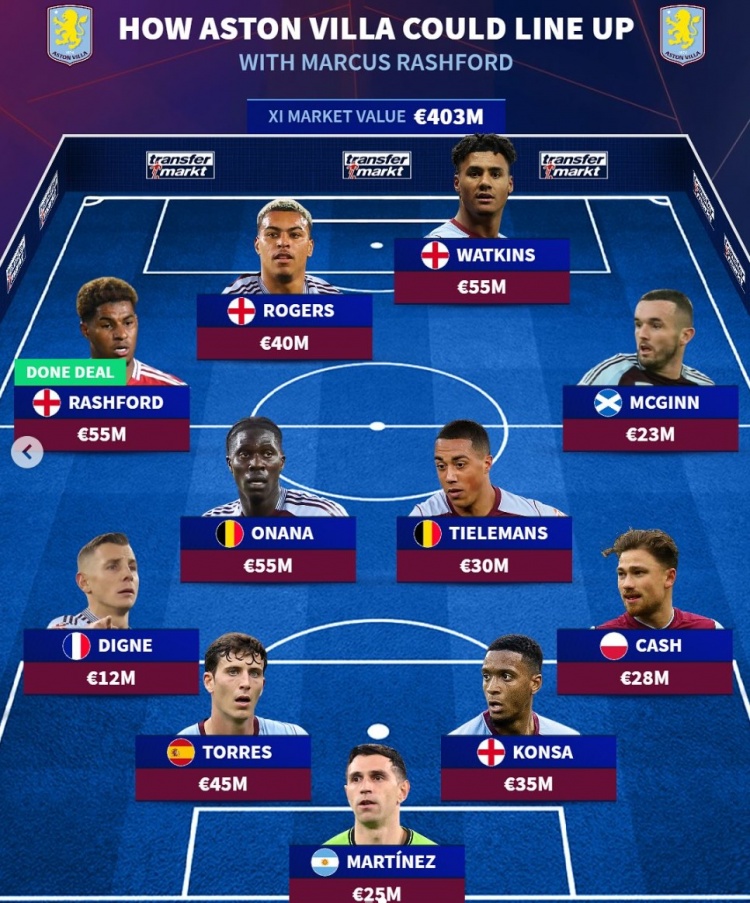 2月3日訊 2月3日訊 曼聯(lián)邊鋒拉什福德已經(jīng)官宣外租維拉,《轉(zhuǎn)會(huì)市場(chǎng)》也預(yù)測(cè)了維拉的潛在主力陣容。