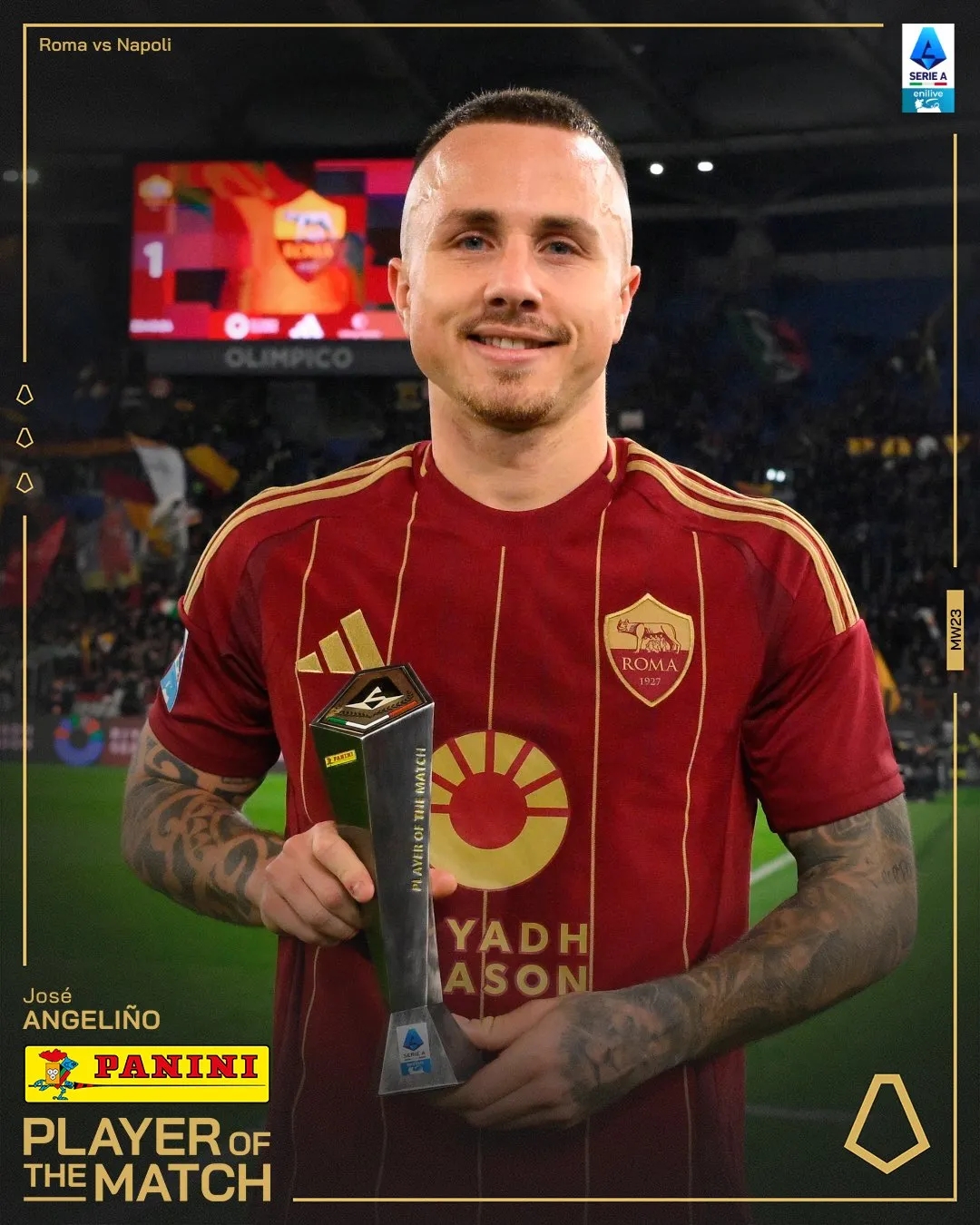 2月3日訊 羅馬在本輪意甲1-1絕平那不勒斯,進球功臣安吉利諾在賽后當選意甲官方全場最佳。
