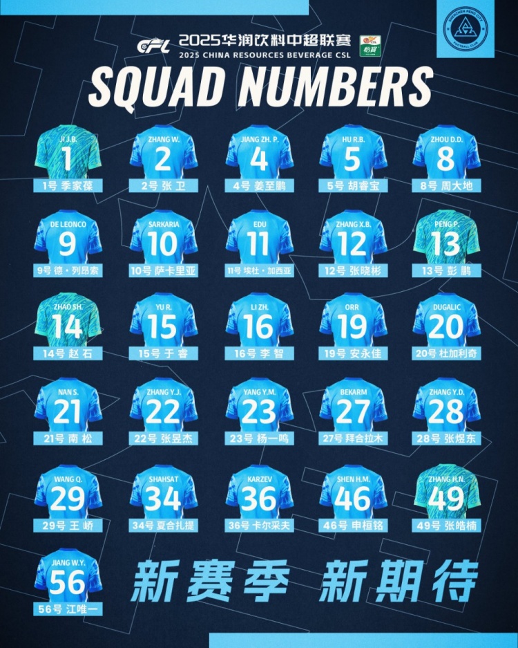 2月20日訊 深圳新鵬城俱樂部公布了2025賽季一線隊名單,共26名球員入選。