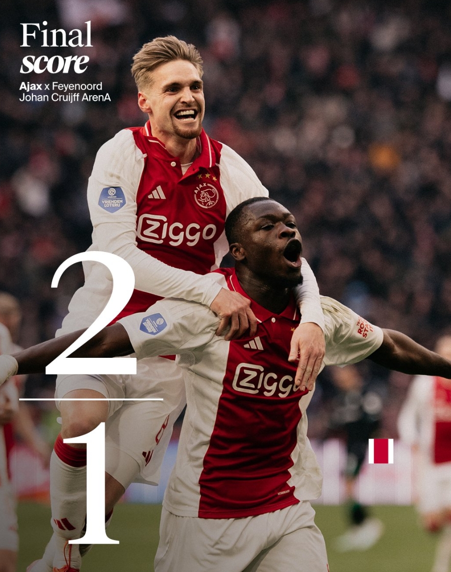 5連勝!阿賈克斯2-1絕殺費(fèi)耶諾德 賈府落后榜首2分飛燕4輪不勝