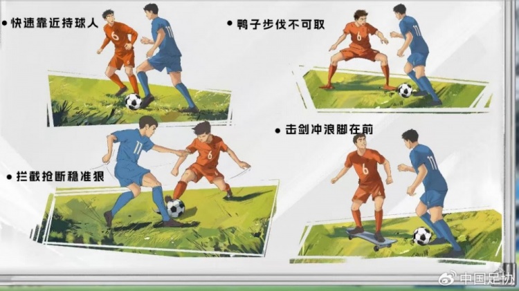 為了讓隊員們更直觀理解每堂課的內(nèi)容,宗磊特意將每項培訓內(nèi)容的要點提煉出“七字箴言”,比如針對一對一防守,他提煉的要訣為,“快速靠近持球人,攔截搶斷穩(wěn)準狠;鴨子步伐不可取,擊劍沖浪腳在前”。不僅如此,他還請人配上了漫畫,讓人看了,一目了然。