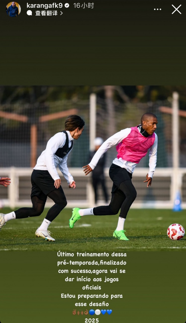 2月21日訊 昨天,大連英博外援卡蘭加更新社媒,展望了即將到來的新賽季。