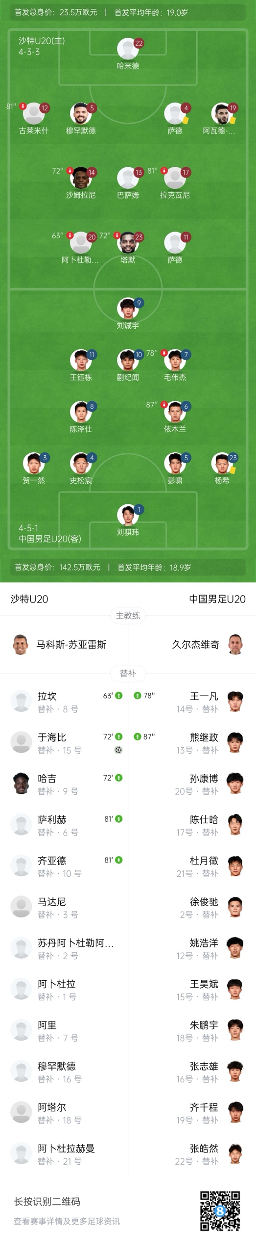 本場(chǎng)換人情況,國(guó)青只換兩人