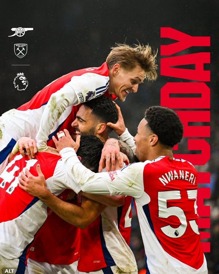 2月22日訊 本輪英超阿森納將坐鎮(zhèn)主場迎戰(zhàn)西漢姆,球隊官推也曬出海報為本場比賽預(yù)熱,海報中是厄德高、恩瓦內(nèi)里等人與梅里諾慶祝進(jìn)球合影。