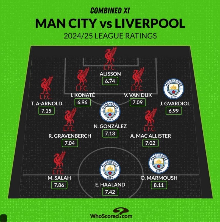 2月23日訊 本輪英超將迎來曼城與利物浦的對決,數(shù)據(jù)網(wǎng)站W(wǎng)hoscored也盤點(diǎn)了兩隊球員在本賽季聯(lián)賽評分最高陣容,具體如下: