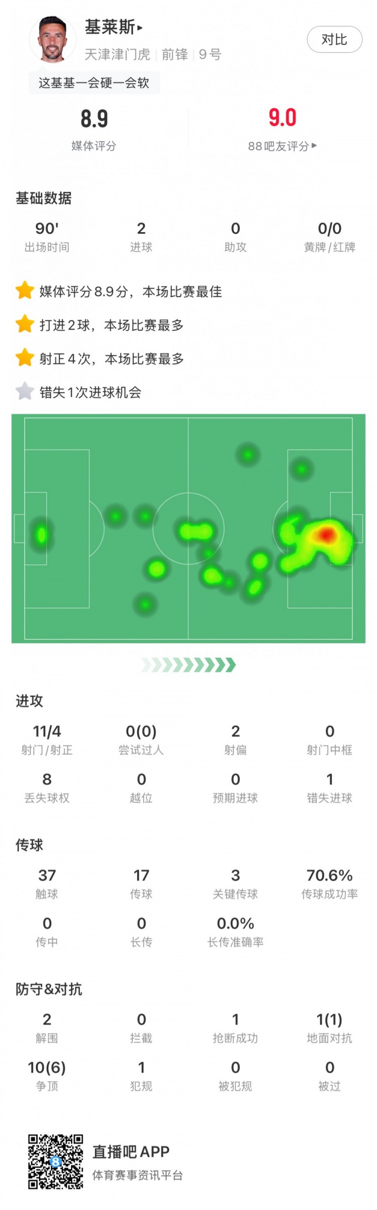 2月23日訊 今天下午進(jìn)行的新賽季中超首輪比賽,主場(chǎng)作戰(zhàn)的津門(mén)虎,在兩球落后的不利形勢(shì)下,依靠基萊斯在比賽最后時(shí)刻的兩個(gè)進(jìn)球,2-2艱難戰(zhàn)平梅州客家。梅開(kāi)二度的基萊斯也成為了本場(chǎng)比賽表現(xiàn)最為搶眼的球員。