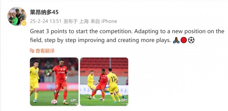 萊昂納多賽后更新社媒:拿下三分開啟新賽季,我正在適應(yīng)新的場上位置,得逐步提升表現(xiàn),創(chuàng)造更多出場機(jī)會。