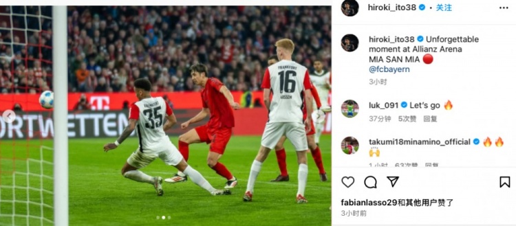 伊藤洋輝曬照紀(jì)念拜仁首球:在安聯(lián)球場(chǎng)的一個(gè)難忘的瞬間