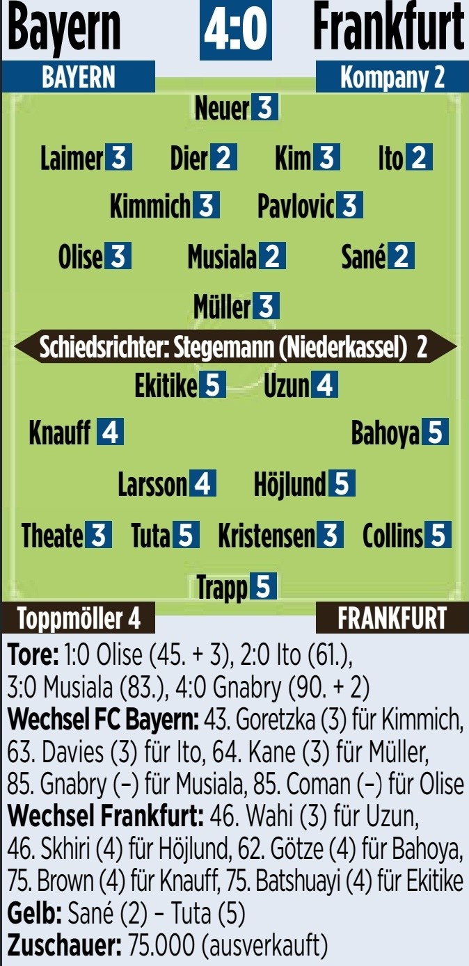 2月24日訊 本輪德甲比賽,拜仁主場(chǎng)4-0戰(zhàn)勝法蘭克福。賽后《圖片報(bào)》對(duì)于兩隊(duì)表現(xiàn)進(jìn)行了評(píng)分。