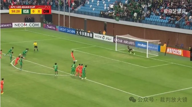 在中國隊主罰隊員將球踢出前,明顯可以看出有兩名沙特隊員提前進入罰球區(qū),并且就是在裁判員的目視下,那么在球罰丟的情況下,需不需要重罰呢?