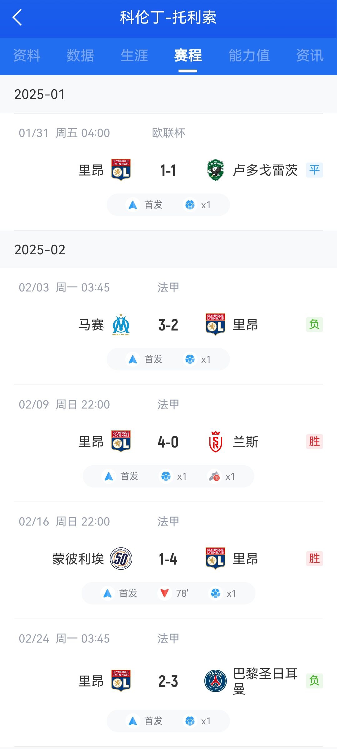 02月25日訊 在周末的法甲第23輪中,里昂2-3不敵巴黎,本場比賽托利索打入一球,他在里昂的近5場比賽中每場都能打入一球。