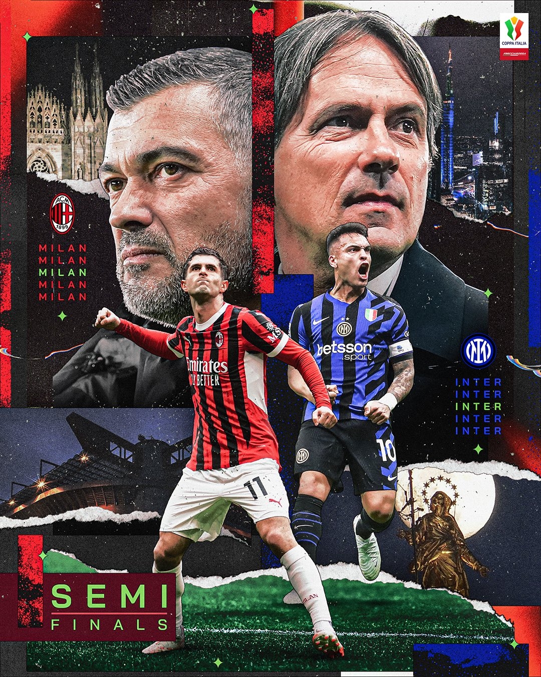 意大利杯半決賽將是兩回合制,國(guó)米和米蘭本賽季將有5次對(duì)決。本賽季前3場(chǎng)對(duì)陣中,國(guó)米聯(lián)賽主場(chǎng)1-2、客場(chǎng)1-1米蘭,超級(jí)杯決賽2-3不敵米蘭。