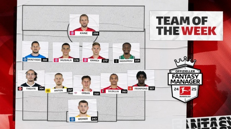德甲官方第20輪最佳陣:凱恩領銜拜仁3將,弗林蓬、奧爾班在列