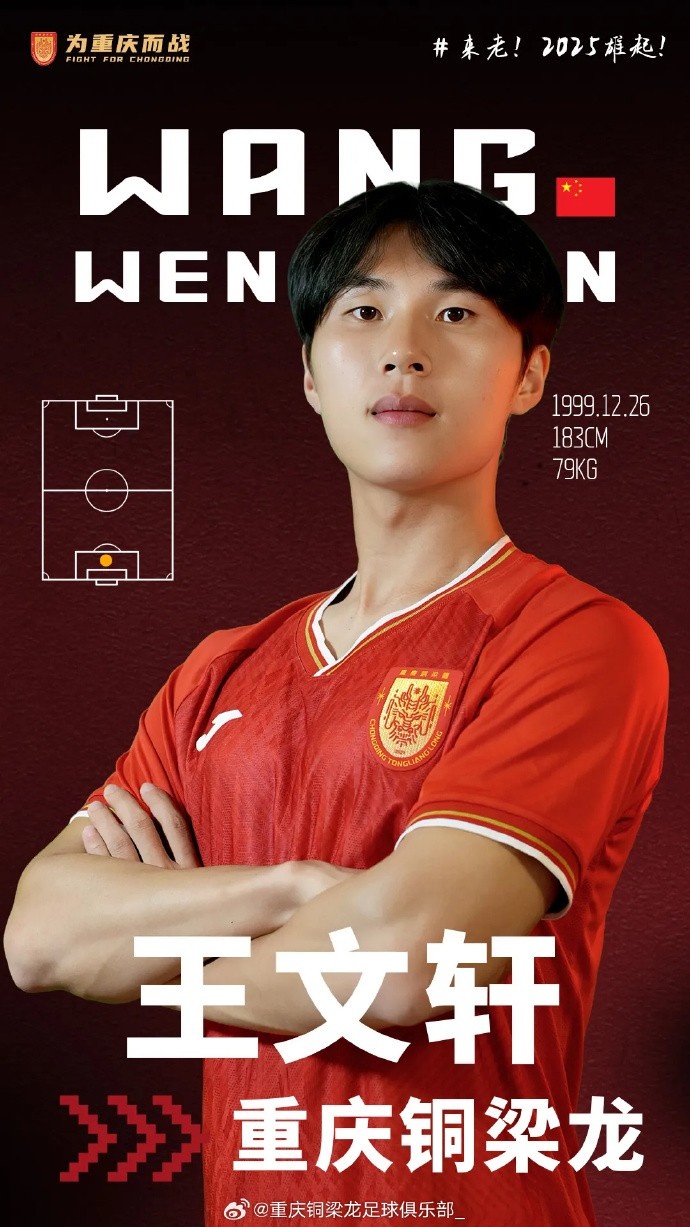 2月26日訊 官方消息,后衛(wèi)王文軒正式加盟中甲球隊(duì)重慶銅梁龍。