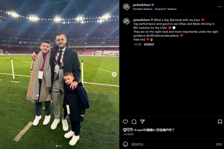 威爾希爾寫道:和我的孩子們度過了多么美好的一天??球隊踢出了頂級表現(xiàn),也很高興看到恩瓦內(nèi)里和斯凱利能在重大比賽中茁壯成長!他們走在正確的道路上,更重要的是這也要歸功于阿森納青訓(xùn)的正確培養(yǎng)。