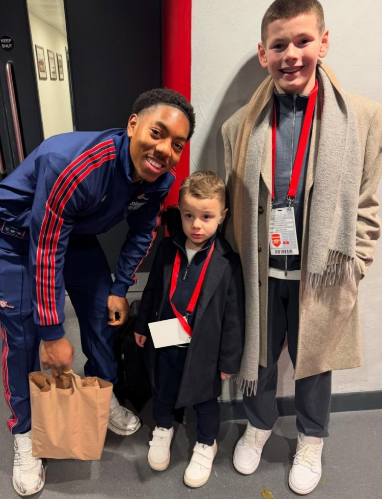 2月3日訊 本輪英超焦點戰(zhàn),阿森納5-1血洗曼城。本場比賽,阿森納名宿威爾希爾帶著兩個兒子來到現(xiàn)場觀戰(zhàn)。賽后他更新社媒,慶祝大勝的同時稱贊了槍手的青訓(xùn)成果。
