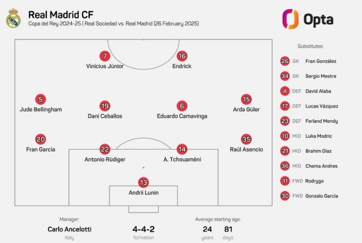 在皇馬首發(fā)陣容中同時(shí)排出了居勒爾、恩德里克以及維尼修斯,這還是三人在各項(xiàng)賽事中首次共同為皇馬先發(fā)出戰(zhàn)。
