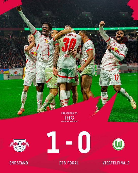 2月27日訊 今天凌晨,萊比錫紅牛在德國(guó)杯1/4決賽中1-0小勝沃爾夫斯堡,自此,本賽季德國(guó)杯四強(qiáng)球隊(duì)出爐。