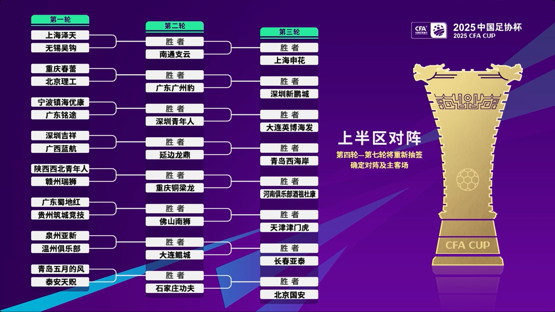 02月27日訊 2025年中國足協(xié)杯抽簽儀式今日舉行,此次抽簽確定第1輪至第3輪的對陣,中超16隊第3輪亮相并客場作戰(zhàn),第4輪至第7輪將重新抽簽確定對陣及主客場。
