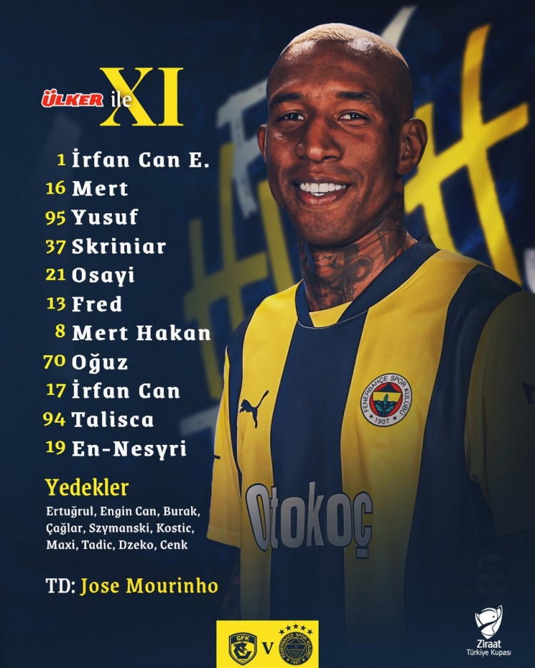 費(fèi)內(nèi)巴切首發(fā):1-伊凡-詹-奧里巴亞特、16-穆爾杜、95-阿克西切克、37-什克里尼亞爾、21-奧薩伊、13-弗雷德、8-哈坎、70-奧古茲、17-伊凡-詹-卡維奇、94-塔利斯卡、19-恩內(nèi)斯里