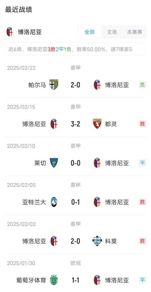 博洛尼亞首發(fā):1-斯科魯普斯基、29-德-西爾維斯特里、31-別克馬、15-卡薩勒、33-胡安-米蘭達、8-弗魯勒、19-劉易斯-弗格森、11-恩多耶、80-法比安、30-本杰明-多明戈斯、9-卡斯特羅