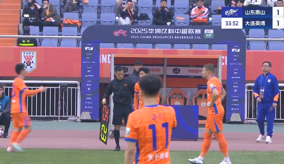 多打一人加強進攻!泰山第34分鐘換人,謝文能換下彭欣力