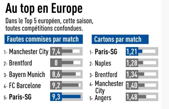 3月1日訊 法國(guó)媒體《隊(duì)報(bào)》對(duì)五大聯(lián)賽本賽季場(chǎng)均犯規(guī)次數(shù)和吃牌數(shù)最少的球隊(duì)進(jìn)行了統(tǒng)計(jì),其中巴黎圣日耳曼在兩項(xiàng)統(tǒng)計(jì)中都排在了前五名,具體如下: