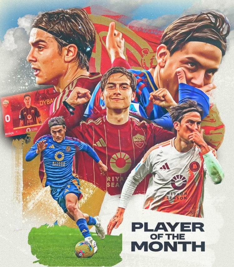 7場(chǎng)1助攻!官方:迪巴拉當(dāng)選羅馬1月最佳球員