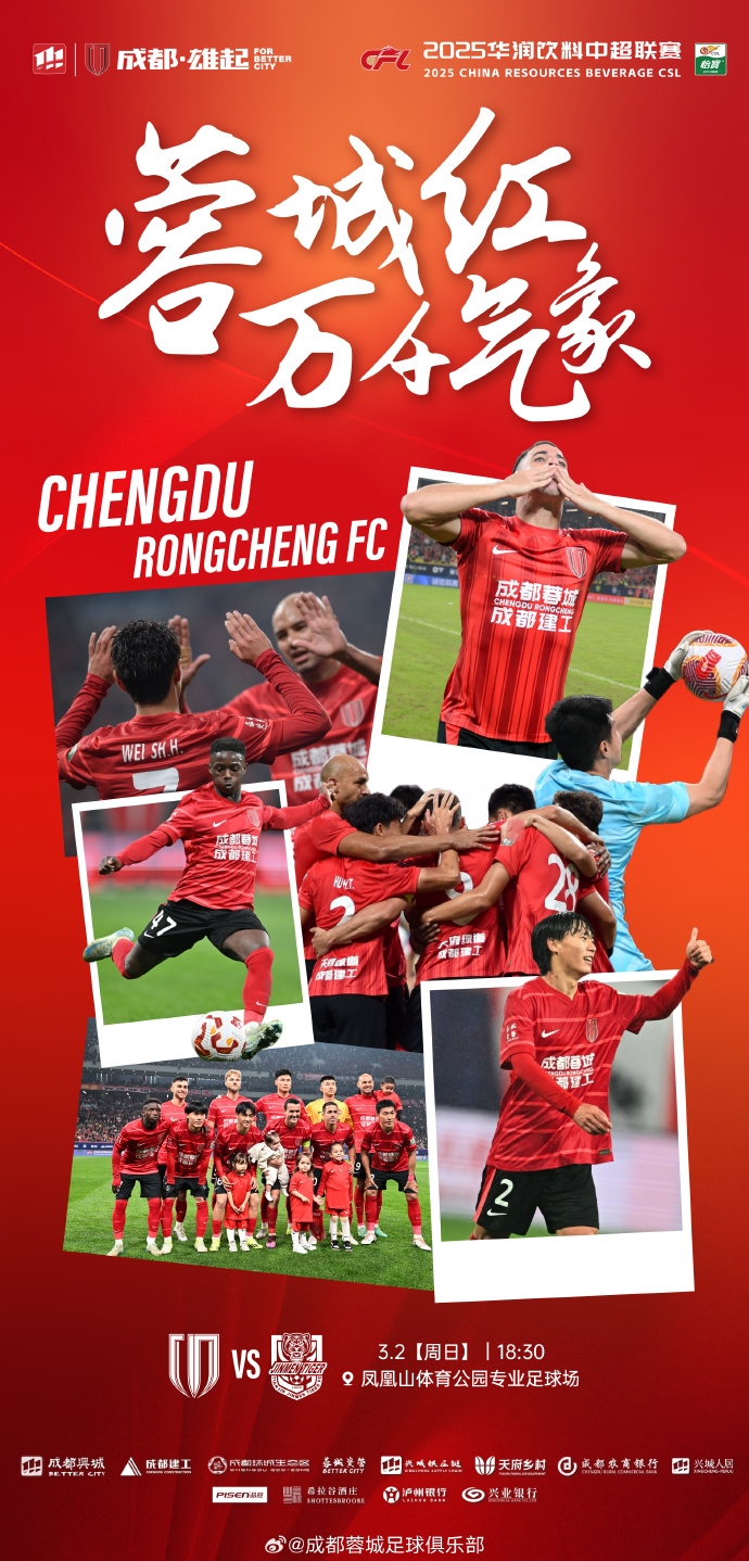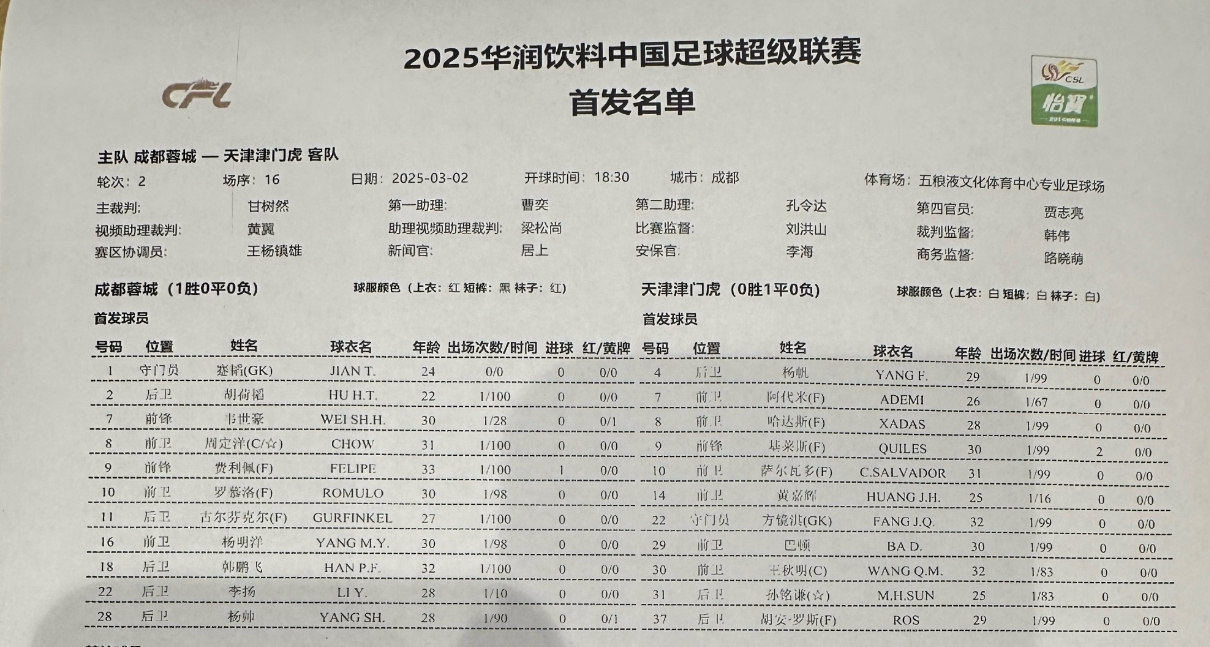 03月02日訊 北京時間今天18點30,中超第二輪,成都蓉城坐鎮(zhèn)主場對陣天津津門虎,賽前首發(fā)陣容公布。